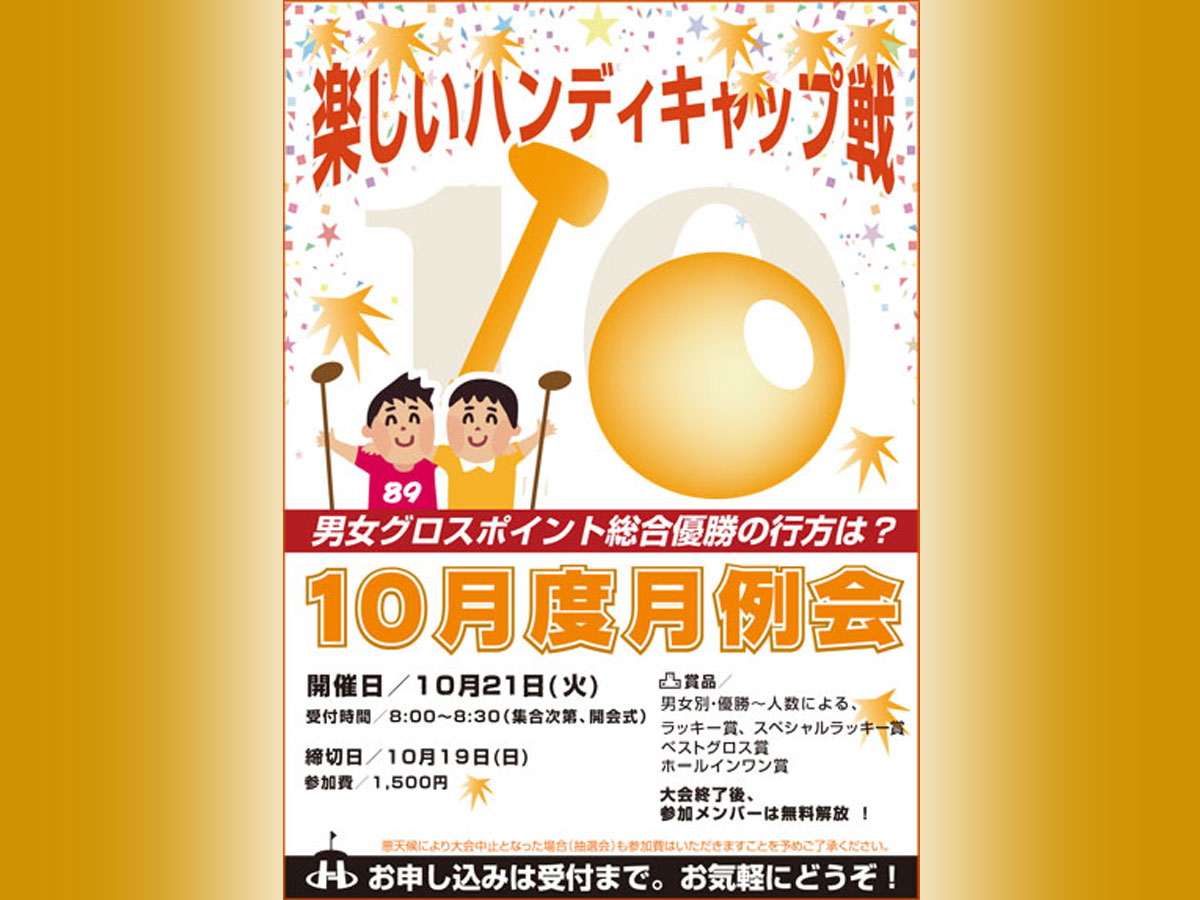10月21日、10月度月例会が男女119名の参加で開催されました。月例シリーズも残り2戦となり、大詰めとなったグロスポイントランキングやグランドチャンピオン大会出場切符を懸けて白熱した大会になりました。